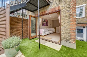 This flat is definitely a flat within which to entertain, with its large and very bright reception room leading directly into the garden via fully opening folding doors; it is a garden that captures the sun well into the evening.